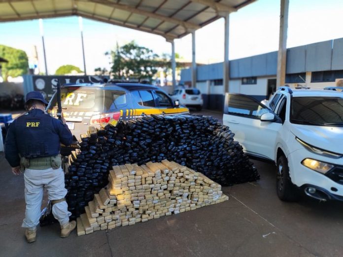 Durante inspeção, foi constatado que o carro estava abarrotado com tabletes da droga. Questionada, a mulher acabou confessando que dava apoio ao marido no transporte ilícito.