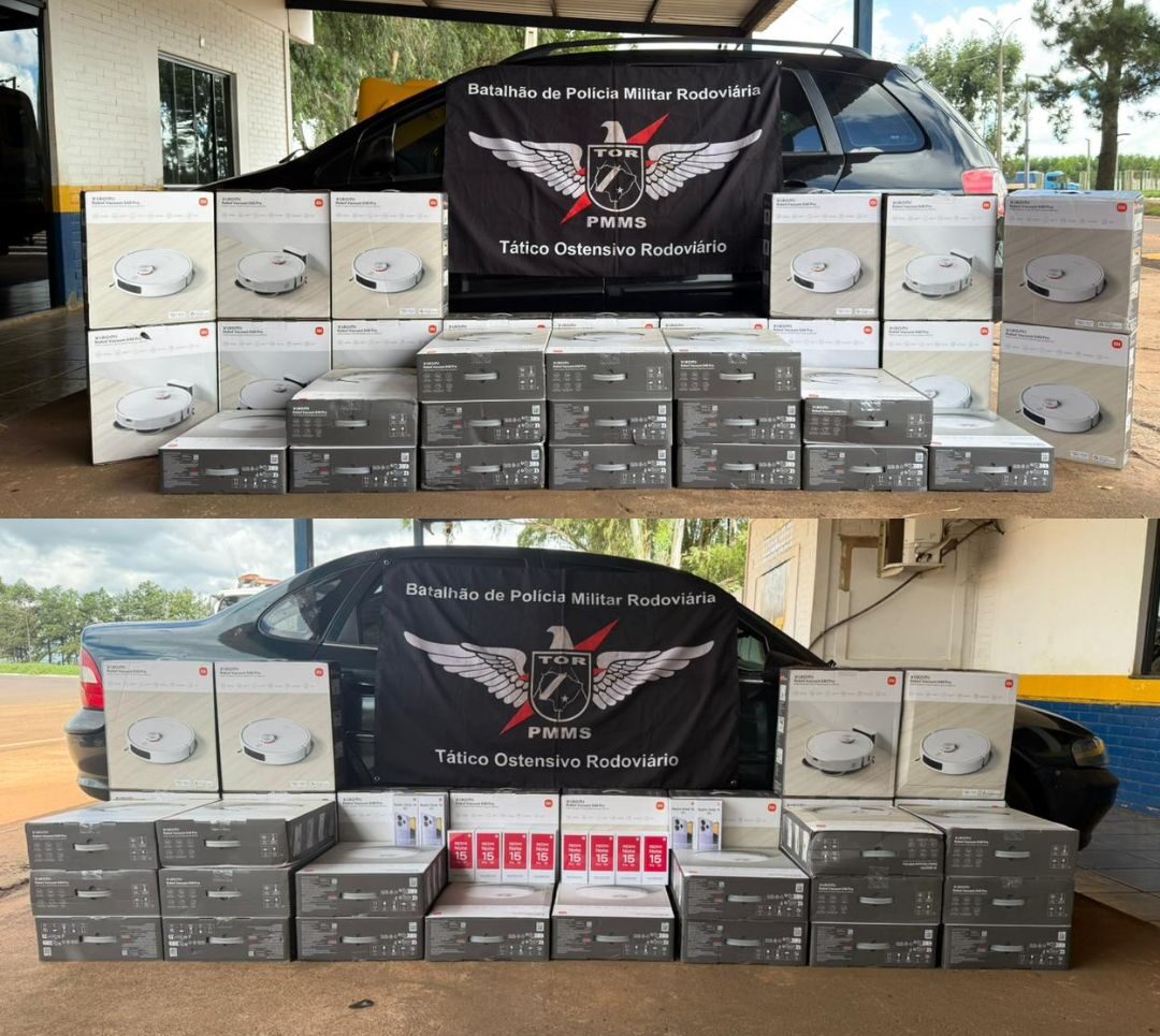 As duas apreensões realizadas em Mato Grosso do Sul por policiais do Tático Ostensivo Rodoviário (TOR), do Batalhão de Polícia Militar Rodoviária (BPMRv), não tiveram relação e isso mostra diferentes frentes de atuação. Na primeira, um Vectra transportava robôs aspiradores, celulares e uma antena Starlink sem documentação fiscal. Toda a apreensão totalizou R$ 103 mil de prejuízo ao crime.