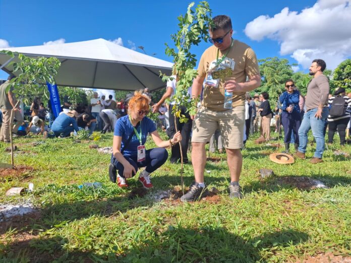 #ParaTodosVerem: A imagem em destaque mostra a população e participantes da COP 15 plantando árvores nativas do Cerrado e frutíferas no Bosque da COP 15