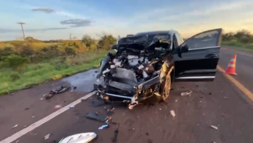 Acidente ocorrido no começo da manhã desta segunda-feira (16) deixou um motorista preso às ferragens na BR‑060, no trecho que passa por Sidrolândia, nas proximidades da região conhecida como Capão Seco. A colisão envolveu um carro Tiggo 7 e um caminhão carregado com madeiras. Com o impacto, o veículo de passeio ficou completamente destruído, e o motorista acabou preso na estrutura do automóvel.
